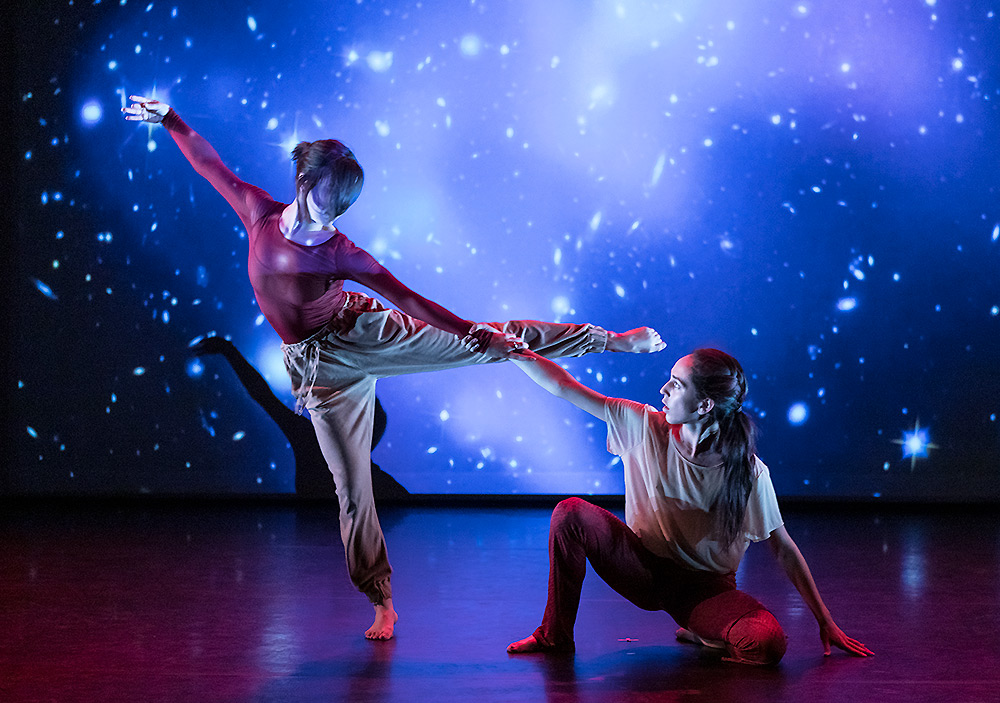 Maria Rendina Frantz’s very aptly named Motion Theatre Dance Company presents compelling works combining a lively variety of choreography with thought provoking theatrical themes and ideas to create some mighty fine shows. Their most recent show, “Journey,” at Center Stage Theater was delightfully varied with choreography by Artistic Director Frantz and dancers Sammy Gerraty, Kelly O’Conner and Gianna Burright. The show began with Maria’s “Chidambaram” set to a lush orchestral composition by Ravi Shankar, a flowing and sinuous dance work evoking pastoral scenes of rivers and maidens celebrating the beauty and joy of dancing, with a good dose of spiritual mystery, and forth company member Tara McAnich’s solos were delightful. Next, Gerraty’s improvisational solo piece about personal isolation and discovery was set to atmospheric music by Vangelis. Kelly O’Conner and Ms. Gerraty performed O’Conner’s “o p e n s p a c e s,” a dynamic existential exploration of relationships and one’s place in the universe before projected imagery of the cosmos, then changed gears, music and projection for a slow and jazzy finale. Frantz’s “Trois Saintes De La Mer,” a premiere, returned to a watery sub-theme as three company dancers danced in beautiful flowing costumes before footage of waves breaking at dusk on a local beach to Beethoven’s “Moonlight Sonata” with added audio of the waves.  Two students performed a pas de deux at about the halfway point in this gently evocative and then bracingly fast paced work. Alienation was given a humorous ironic twist in Burright’s solo “Turn It On, Turn It Off” which was filled with intriguing, original and at times almost hilarious choreography, superbly illustrating the spoken narrative that was integrated with an original score by Matt Kirk. Ending the performance was another premiere by Maria Frantz, the namesake of the show – “Journey.”  Set to music by Nino Rota, this piece was the most “theatrical” of the evening and fittingly had elements of comedy and hustle bustle, plus some pathos, all of which could have come from an Italian film set in early twentieth century America. So, an evening of journeys, spiritual, personal and interpersonal, all presented with consummate skill and artistic adventure!
